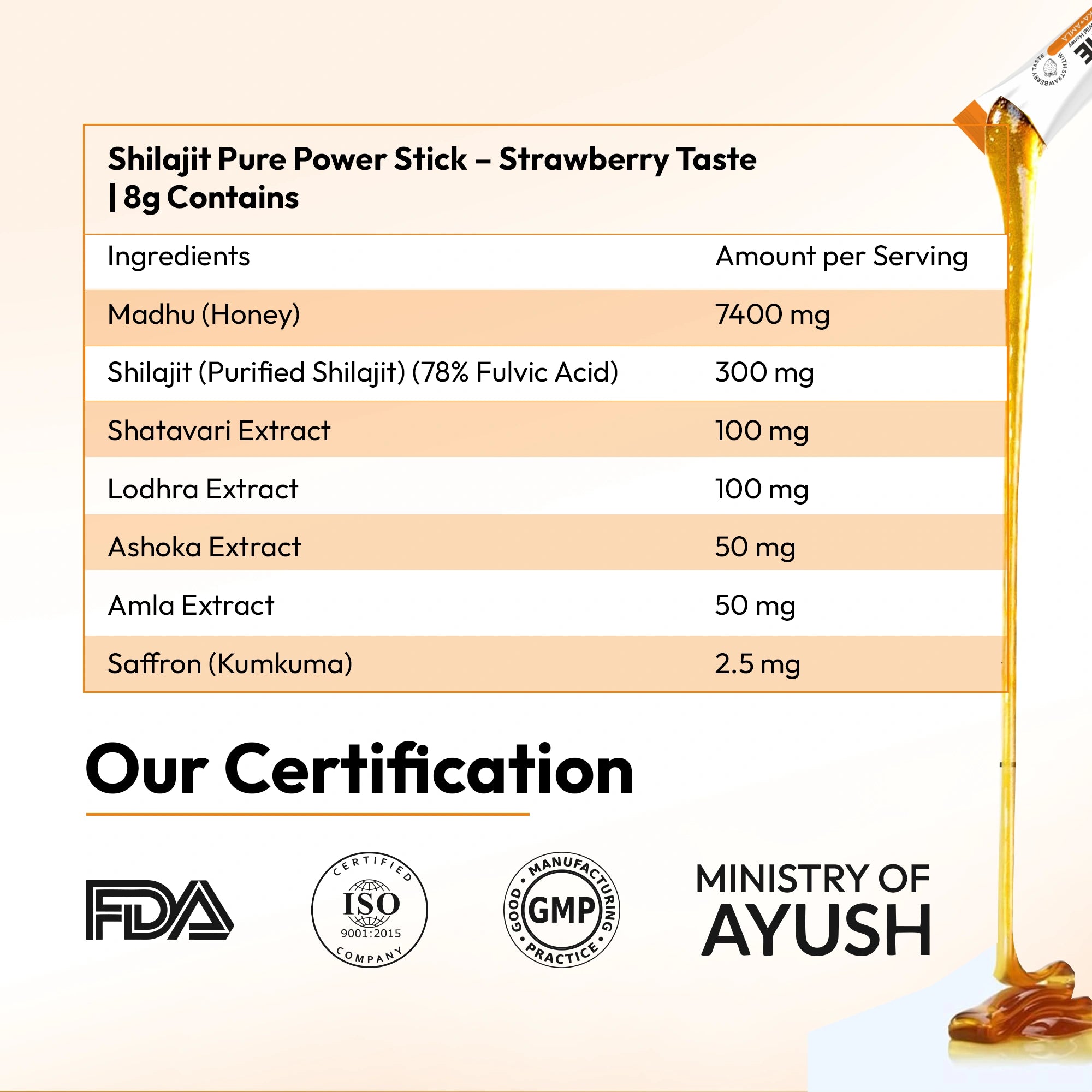 Each daily serving (1 stick) provides a balanced combination of ingredients that work together to support stamina, strength, hormonal balance support, immunity, and well-being. Its formula makes it ideal during busy workdays, travel, seasonal changes, fatigue, weakness, or when you need daily support to stay active and refreshed.